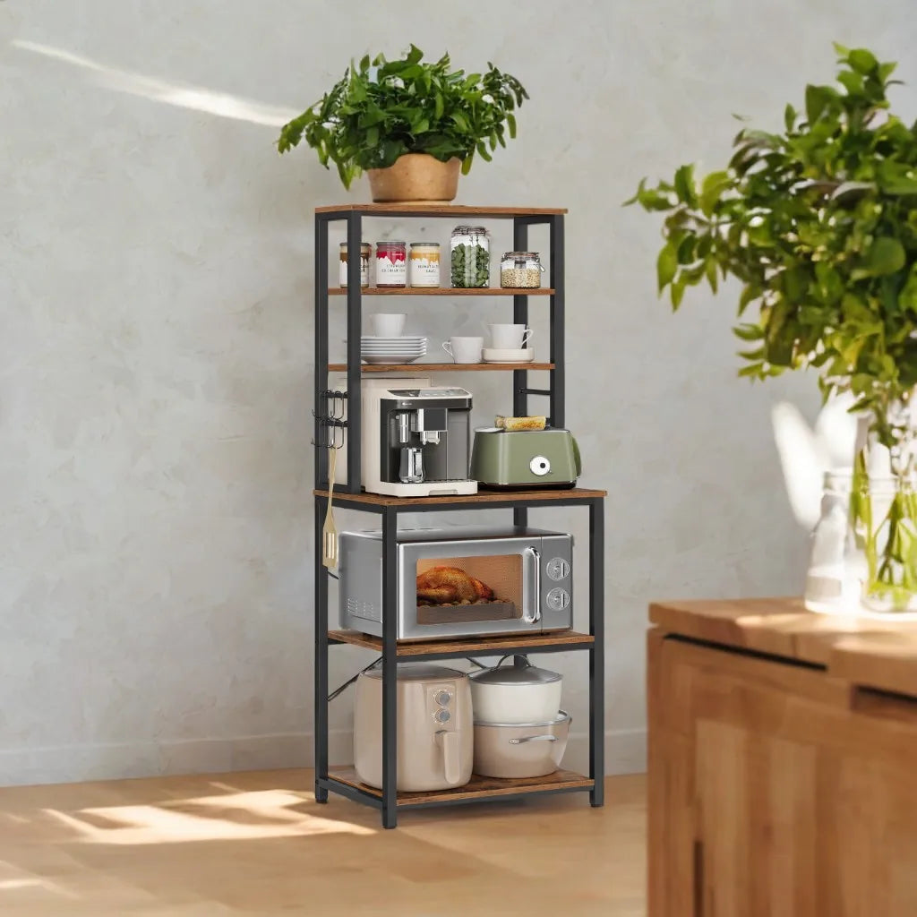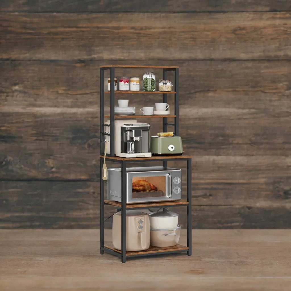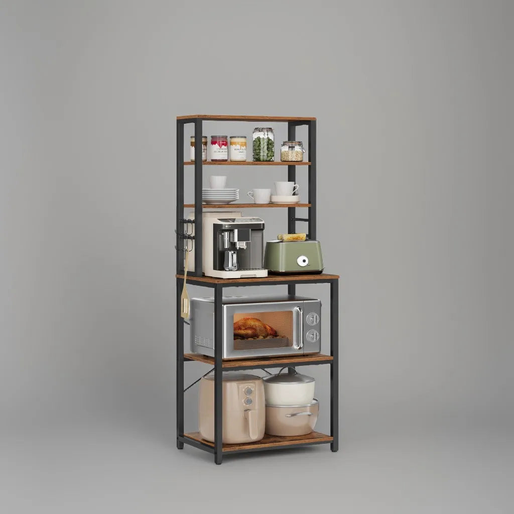 A82 Coffee Bar, 6-Layer Kitchen Shelf with 6 Hooks, Kitchen Bread Rack, Microwave Rack