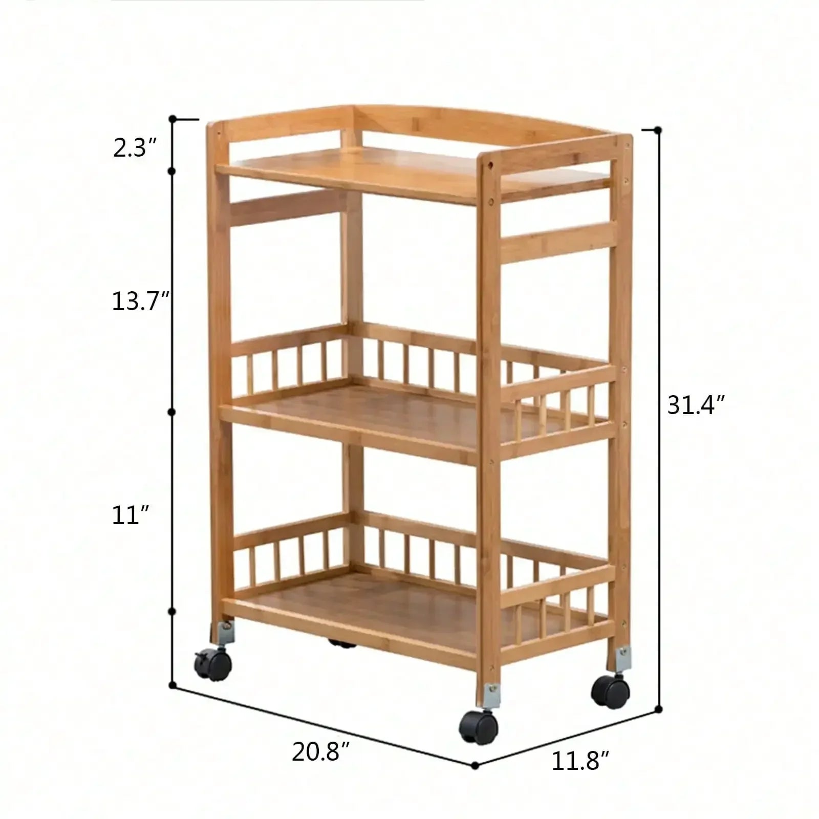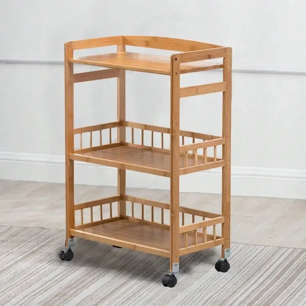 C125 Wooden Salon Trolley Bamboo Three-Tier Rolling Home Bar Mobile Kitchen Serving Cart